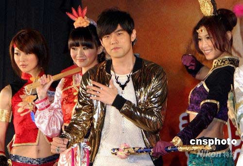 4月15日,在線游戲《真·三國(guó)無(wú)雙Online》在臺(tái)北舉行公測(cè)發(fā)布會(huì),周杰倫擔(dān)任其2008最新代言人,并由其親自操刀特地為此創(chuàng)作并執(zhí)導(dǎo)MV《無(wú)雙》。中新社發(fā) 杜洋 攝