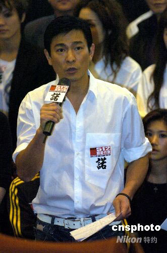 五月二十二日,“演藝界‘五·一二’關(guān)愛(ài)行動(dòng)”在香港舉行新聞發(fā)布會(huì),召集人劉德華出席并承諾將會(huì)出全力為四川地震受災(zāi)群眾重建家園。中新社發(fā) 譚達(dá)明 攝
