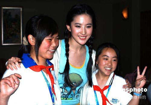 6月2日,89名來(lái)自四川北川、彭州、寶興、崇州等地震災(zāi)區(qū)失去親人的兒童,乘坐南方航空海南分公司的愛(ài)心專機(jī)抵達(dá)海南三亞,進(jìn)行為期半個(gè)月的“愛(ài)心呵護(hù)、陽(yáng)光行動(dòng)”心靈呵護(hù)之旅。著名影星劉亦菲當(dāng)日專程趕到孩子們?nèi)胱〉娜齺喬煊蚨燃倬频昕赐。中新社發(fā) 尹海明 攝