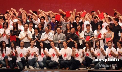 6月19日晚,由中國(guó)服裝設(shè)計(jì)師協(xié)會(huì)在北京舉辦的“人文奧運(yùn)”時(shí)尚成衣發(fā)布會(huì)暨“愛(ài)心·時(shí)尚”賑災(zāi)捐贈(zèng)會(huì)上,“中國(guó)模特愛(ài)心行動(dòng)”再掀一個(gè)高潮,中國(guó)內(nèi)地名模代表們通過(guò)現(xiàn)場(chǎng)宣誓,吹響“中國(guó)模特愛(ài)心行動(dòng)”全面啟動(dòng)的號(hào)角,“中國(guó)模特愛(ài)心行動(dòng)”將在今后定期或不定期的舉辦各種形式的宣傳活動(dòng)籌集善款,并全部用于資助災(zāi)區(qū)及其它貧困地區(qū)的兒童教育事業(yè)。中國(guó)扶貧基金會(huì)收到全額款項(xiàng)后,將根據(jù)中國(guó)服裝設(shè)計(jì)師協(xié)會(huì)職業(yè)時(shí)裝模特委員會(huì)的意愿,點(diǎn)對(duì)點(diǎn)落實(shí)為災(zāi)區(qū)小學(xué)建立圖書室、電腦房等。圖為中國(guó)時(shí)裝設(shè)計(jì)師、模特以及中國(guó)服裝業(yè)內(nèi)人士一起參加愛(ài)心行動(dòng)啟動(dòng)。中新社發(fā) 錢興強(qiáng) 攝