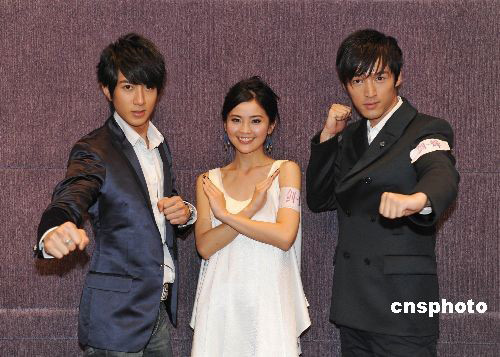 10月9日,馬楚成最新功夫愛情巨制《劍蝶》上映在即,主演吳尊、阿Sa、胡歌以及武術(shù)指導(dǎo)程小東專程趕到北京,與導(dǎo)演馬楚成一同接受各大媒體專訪。初次亮相電影銀幕的吳尊與阿Sa首次攜手,馬楚成對他們的表現(xiàn)贊不絕口,更是給出了“前途無限”的評價。而《劍蝶》對胡歌也有著特殊的意義,這是他車禍受傷后首次出演的作品。據(jù)了解,《劍蝶》將于10月16日在全國上映。 中新社發(fā) 李學(xué)仕 攝
