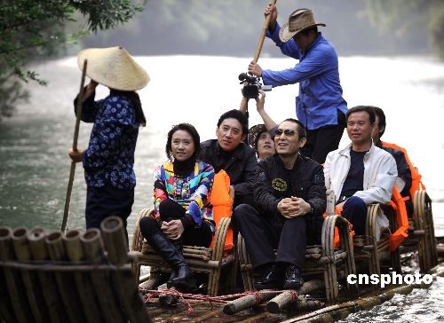 11月17日,著名的“鐵三角導(dǎo)演” 張藝謀、王潮歌和樊躍共同亮相福建省的風(fēng)景名勝武夷山景區(qū),對(duì)景區(qū)進(jìn)行考察和采風(fēng),并參加了“九曲溪”水上漂流活動(dòng),這標(biāo)志著 “印象系列”山水實(shí)景演出的又一作品——《印象大紅袍》正式啟動(dòng)。這也是繼2008北京奧運(yùn)會(huì)和殘奧會(huì)開、閉幕式成功舉辦之后,張藝謀、王潮歌和樊躍合作推出的又一個(gè)“印象系列”的項(xiàng)目。 中新社發(fā) 劉鷹 攝