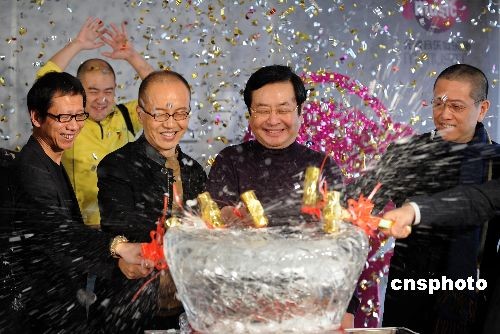 十二月二十七日,陳其鋼、曾慶淮、陳丹青等揮錘砸爛冰制鳥巢,取出《我和你》珍藏版專輯正式發(fā)布。陳其鋼是北京奧運(yùn)會(huì)開幕式音樂總設(shè)計(jì),北京奧運(yùn)會(huì)開幕式主題曲《我和你》的作者。中新社發(fā) 廖攀 攝