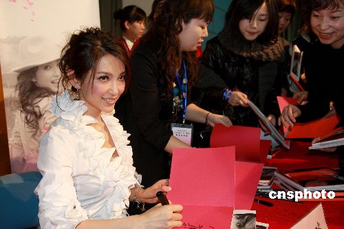 1月7日,李冰冰帶著新書《李冰冰:十年·映畫》在北京國(guó)際展覽中心召開新聞發(fā)布會(huì),并把新書獲得的首批版稅捐給了聯(lián)合國(guó)兒童基金會(huì)。現(xiàn)場(chǎng)不少影迷專程從外地飛赴北京趕來給李冰冰獻(xiàn)花、加油。而為了感謝影迷的支持,李冰冰也在現(xiàn)場(chǎng)為部分讀者簽名贈(zèng)書。中新社發(fā) 鄭雄增 攝
