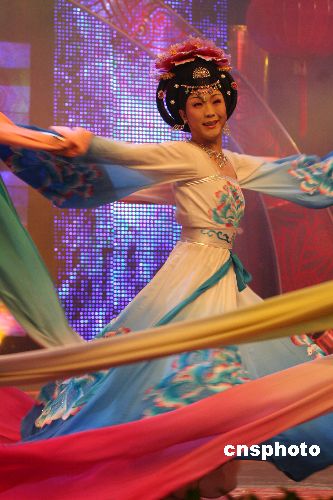 背景資料:舞臺(tái)上的李玉剛是一個(gè)28歲的東北農(nóng)村小伙子,用男扮女裝的表演和男唱女腔的歌聲,闖入央視《星光大道》,并獲得2006年度季軍。舞臺(tái)上的“絕色佳人”李玉剛,在生活中是一個(gè)聲音陽剛、長相帥氣的小伙子。李玉剛的老家在吉林省公主嶺市一個(gè)偏僻的農(nóng)村,和很多東北人一樣,李玉剛的母親也很喜歡唱二人轉(zhuǎn)。受母親的影響,他從小喜歡唱歌。1996年高中畢業(yè)后的李玉剛考取吉林省藝術(shù)學(xué)院,但由于家里供不起,李玉剛不得不放棄學(xué)業(yè),17歲開始出去闖蕩。2006年夏天,一次機(jī)會(huì)讓全國電視觀眾認(rèn)識(shí)了李玉剛。男扮女裝的李玉剛在星光大道上一出現(xiàn),觀眾驚訝不已,很多人都不相信他是個(gè)小伙子!栋酝鮿e姬》、《貴妃醉酒》是京劇藝術(shù)中的兩個(gè)傳統(tǒng)曲目,在表演這兩個(gè)節(jié)目的過程中,李玉剛借鑒了京劇藝術(shù)的手段,加入了很多表現(xiàn)方式。中新社發(fā) 牛書培 攝