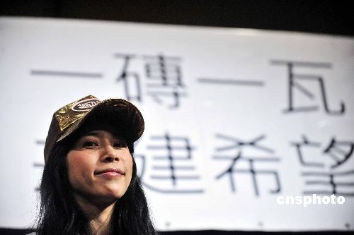 三月四日,香港歌手莫文蔚在仁人家園舉行的記者會上呼吁,賑災(zāi)除了捐錢,年輕人還應(yīng)該捐時(shí)間和力氣。國際非牟利組織仁人家園當(dāng)天在港宣布,在全球招聘五百義工,幫助四川災(zāi)區(qū)七百個(gè)受災(zāi)家庭重建家園。中新社發(fā) 譚達(dá)明 攝