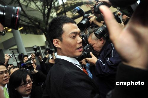 三月十一日,四十一歲的香港藝人謝天華,因酒后駕駛及不小心駕駛,被香港東區(qū)法院判監(jiān)六星期,緩刑一年,同時罰款九千五百港元及停牌一年半。圖為謝天華聽判后離開法院。中新社發(fā) 譚達明 攝