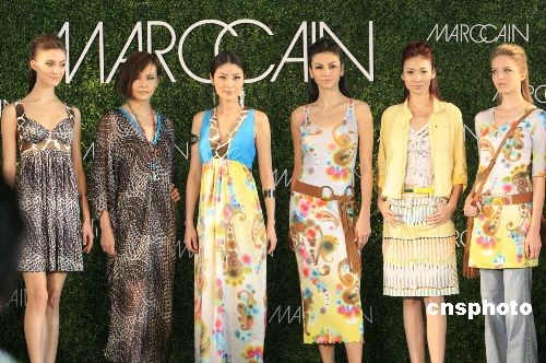 三月十九日,德國一家著名時尚品牌在香港舉辦春夏時裝發(fā)布,懷孕四個月的香港藝人陳慧琳身著時尚夏裝與名模馬詩慧、Rosemary等一同表演。中新社發(fā) 張勤 攝