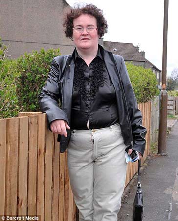 6日,經(jīng)過一番打扮,蘇珊走出家門。面帶招牌式的笑容,蘇珊在自家門前大擺POSE,讓媒體記者拍個夠。開心的蘇珊并沒有注意到當時的形象并不得體——她忘記將褲子的拉鏈拉上。由于褲子太緊而拉鏈又沒拉,里面的衣服大有往外擠的陣勢。老式黑色襯衣緊緊地繃在她身上,更凸顯了她的贅肉。