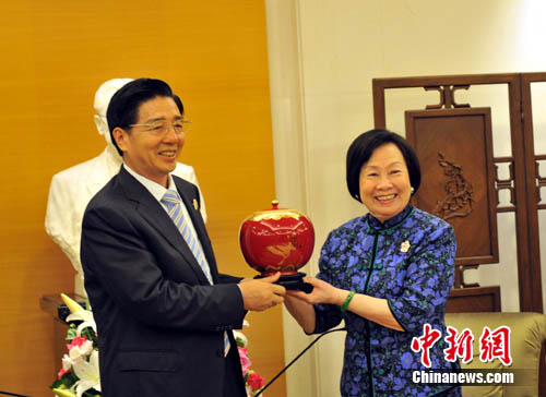 中新網(wǎng)臺(tái)北7月1日電 (記者 蔣雪林 黃少華)已故;鶗(huì)董事長(zhǎng)辜振甫遺孀辜嚴(yán)倬云1日在會(huì)見到訪的廣西書記郭聲琨時(shí)說(shuō),兩岸簽署ECFA,將使兩岸的前途非常光明。