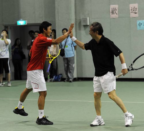 中新網(wǎng)7月6日電 據(jù)“中央社”報(bào)道,5日晚臺(tái)灣“中央研究院”網(wǎng)球場(chǎng)星光燦爛。剛打進(jìn)溫布爾登男單8強(qiáng)的盧彥勛與前“中研院長(zhǎng)”李遠(yuǎn)哲搭配,迎戰(zhàn)以艾滋病雞尾酒療法聞名的何大一與廣州亞運(yùn)網(wǎng)球總教練連玉輝。