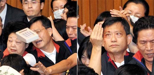 中新網(wǎng)7月9日電 據(jù)臺(tái)灣《聯(lián)合報(bào)》報(bào)道,臺(tái)灣“立法院”昨天為了審議兩岸經(jīng)濟(jì)合作框架協(xié)議(ECFA)爆發(fā)肢體沖突,國(guó)民黨“立委”吳育升被砸傷眼角,民進(jìn)黨“立委”郭玟成攀爬主席臺(tái)時(shí)摔落。砸傷吳育升的民進(jìn)黨“立委”黃偉哲表示,深感遺憾與歉意,愿意賠償醫(yī)藥費(fèi)。