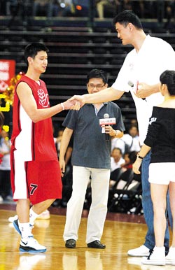 姚明特別介紹NBA球員林書豪,也讓林書豪成為第一位被介紹出場(chǎng)的球員,可見姚明對(duì)林書豪的看重。