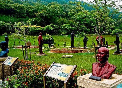教授告訴我,這個(gè)雕像群落多達(dá)兩百余座蔣介石雕像,因上世紀(jì)90年代后期“去蔣化”運(yùn)動(dòng),各地矗立的銅像紛紛拆除,面臨回爐煉銅的命運(yùn)。慈湖所在的桃園縣當(dāng)時(shí)正值“藍(lán)營(yíng)”執(zhí)政,于是將各地拆除的銅像收來(lái),選出其中藝術(shù)水準(zhǔn)較高者,建成雕塑群。