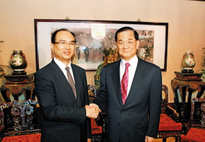 “歡迎你們來臺(tái)灣!”在會(huì)見中,連戰(zhàn)主席對(duì)許勤一行訪臺(tái)表示歡迎,并請(qǐng)?jiān)S勤轉(zhuǎn)達(dá)他對(duì)王榮書記的問候。連戰(zhàn)主席親切地與深圳分團(tuán)成員一一握手和合影留念,并回憶了上次訪問深圳的愉快經(jīng)歷,表示雖然訪問深圳只有一次,時(shí)間很短,但深圳給他留下了深刻而美好的印象。