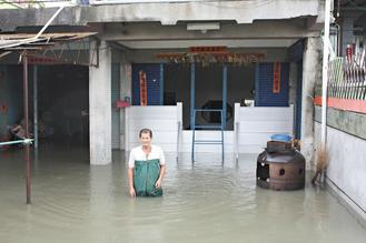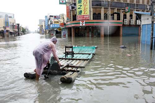 在隘寮溪沿岸的萬丹鄉(xiāng),也因溪水溢流成了澤國,“去年‘莫拉克’淹水也沒這次大!”鄉(xiāng)長郭寶聯(lián)說,這次興化部落全村水深高過一層樓,以往從來沒有過;還有甘棠村從未淹水,這次也躲不過,警消救出上百名受困民眾。