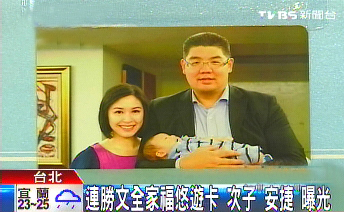 中新網(wǎng)9月25日電 據(jù)臺(tái)灣TVBS電視臺(tái)報(bào)道,連戰(zhàn)長子連勝文和兒媳蔡依珊為保護(hù)孩子,堅(jiān)持不讓連定捷、連安捷兩個(gè)孩子輕易曝光,不過最近上千名國民黨代表,都收到一份別致的小禮物--蔡依珊、連勝文抱著連安捷一起拍合照制作成上千張悠游卡,連安捷可愛的的模樣也首度曝光。