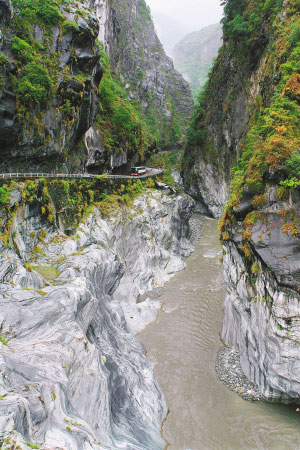 按行程安排,我們當(dāng)晚就要馬不停蹄地趕往100公里外的宜蘭縣。到宜蘭縣已是晚上9點(diǎn)多,下榻的酒店就在路邊。沿途有不少都是溫泉酒店,大部分建在路邊,規(guī)模不大,都是私人經(jīng)營(yíng),但很干凈。次日早餐后,我們冒雨乘車駛上橫貫臺(tái)灣南北的中橫公路。當(dāng)天主要是游覽臺(tái)灣著名景點(diǎn)———花蓮縣的太魯閣大峽谷。