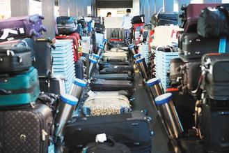 改用人工處理后,出境行李從九條輸送帶匯集到地下室行李處理區(qū)兩個(gè)人工處理轉(zhuǎn)盤,地勤公司出動(dòng)上百位人力圍在轉(zhuǎn)盤四周,目視手動(dòng)檢查每件行李托運(yùn)吊牌,再搬進(jìn)旁邊個(gè)別班機(jī)專用貨柜。由于人工處理轉(zhuǎn)盤空間有限,貨柜圍著轉(zhuǎn)盤排了兩圈,地勤人員揮汗搬行李,撐起“緊急應(yīng)變”機(jī)制。