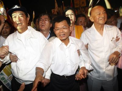 楊秋興當(dāng)日晚間受邀參與“第八屆華人企業(yè)領(lǐng)袖高峰會”活動,并于活動中與臺北市長郝龍斌、臺中市長胡志強等進(jìn)行“城市夜談”,媒體詢問未來是否考慮與藍(lán)營合作,楊秋興說,“沒有合作問題、沒有‘棄!瘑栴},我要爭第一,我要當(dāng)選!
