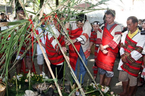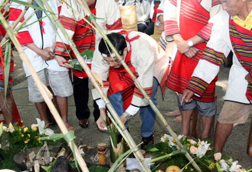 馬英九、吳敦義27日上午聯(lián)袂出席在南投縣仁愛鄉(xiāng)大同村的紀(jì)念儀式,馬英九擔(dān)任主祭,活動(dòng)中還安排音樂會(huì),緬懷追思抗日先烈。此外,馬英九跟吳敦義也穿上臺(tái)灣少數(shù)民族服飾,并一一跟在場少數(shù)民族居民握手。