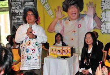 中新網(wǎng)10月29日電 據(jù)臺(tái)灣“今日新聞網(wǎng)”報(bào)道,臺(tái)中市長胡志強(qiáng)28日頭戴花白假發(fā),變身“胡奶奶”,發(fā)表新書《婆婆媽媽臺(tái)中經(jīng)》。他表示,臺(tái)中市就像個(gè)大家庭,主政9年來,他是以家中婆婆媽媽心情料理市政。想的是如何把市政做好,讓市民感到幸福而常常歡笑。