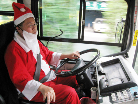 中新網12月20日電 隨著圣誕節(jié)到來,臺北市某客運公司約五百名司機最近又悄悄變裝,打扮成圣誕老公公的模樣,讓平淡的公交車之旅變得更多采多姿,也平添不少歡欣的過節(jié)氣氛。