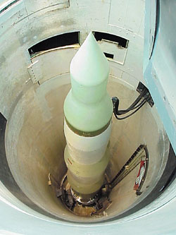 義勇兵洲際彈道導(dǎo)彈,曾是冷戰(zhàn)時(shí)期美國的重要嚇阻力量。2006年8月,美國國防后勤局誤將4具這種導(dǎo)彈的鼻錐引信總成當(dāng)成直升機(jī)蓄電池送至臺(tái)灣。(美聯(lián)社圖)