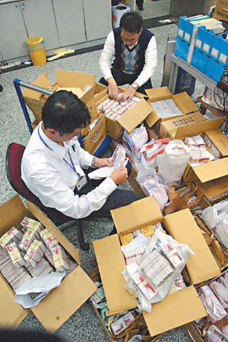 為了紓解兌領(lǐng)人龍,主辦兌領(lǐng)業(yè)務(wù)的臺(tái)銀特別找來(lái)近五百名臨時(shí)人員幫忙兌領(lǐng)、清點(diǎn)。合庫(kù)因?yàn)槭盏降南M(fèi)券實(shí)在太多,直到昨晚行員還在加班。兆豐銀主管也表示,有分行一天收到上百萬(wàn)張的消費(fèi)券,光是一張張核對(duì)背面的數(shù)據(jù)填寫(xiě)是否完整,就不知道要耗費(fèi)多少時(shí)間。