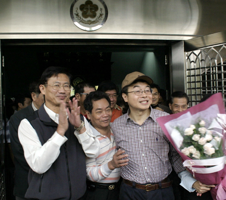 中新網(wǎng)11月20日電 據(jù)“中央社”報道,素有“揭弊英雄”之稱的國民黨“立委”邱毅今天上午減刑出獄,受到支持者熱情歡迎。當他完成各項手續(xù)后走出監(jiān)獄大門時,民眾獻花致意,并高喊邱毅加油。邱毅吃了一口民眾帶來的豬腳面線,以表示去除霉氣。他感謝民眾七個月來的關(guān)心,隨后搭乘高鐵返回臺北。