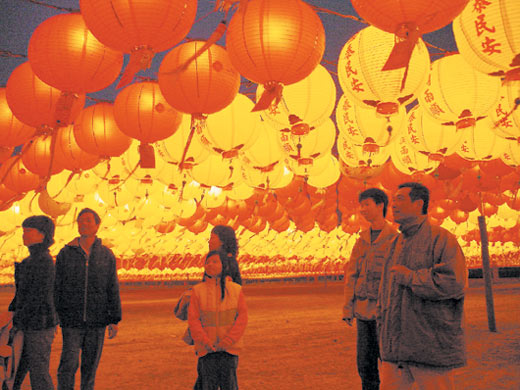 2008臺(tái)灣燈會(huì)和平祈福燈區(qū)可現(xiàn)場(chǎng)或透過網(wǎng)絡(luò)、手機(jī)點(diǎn)燈。(圖:臺(tái)灣《聯(lián)合報(bào)》)