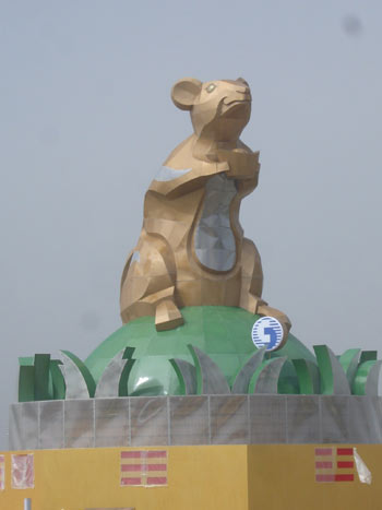 2008臺(tái)灣燈會(huì)主燈“禮鼠獻(xiàn)瑞”20日試燈,21日元宵節(jié)點(diǎn)燈。(圖:臺(tái)灣《聯(lián)合報(bào)》)
