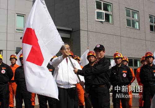 組圖:臺灣紅十字組織為即將入川的救援隊授旗