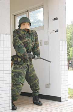 軍方說,假衛(wèi)兵的用意是欺敵,實(shí)際的兵力、火力都隱藏在營區(qū)內(nèi),萬一有人硬闖或企圖潛入時,營區(qū)警衛(wèi)連會立即指揮調(diào)派兵力,三分鐘內(nèi)即可趕抵側(cè)門。
