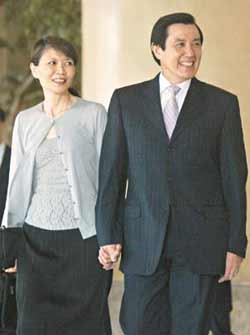 馬英九(右)偕夫人周美青出席郭臺(tái)銘與曾馨瑩訂婚宴。 臺(tái)灣聯(lián)合報(bào)圖