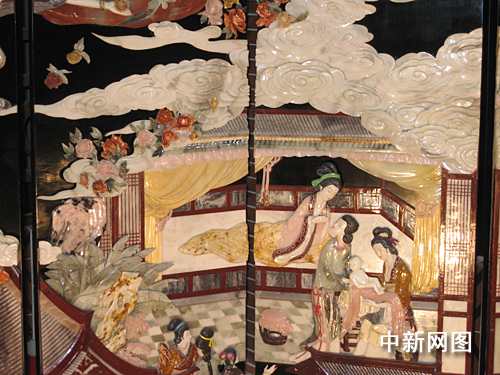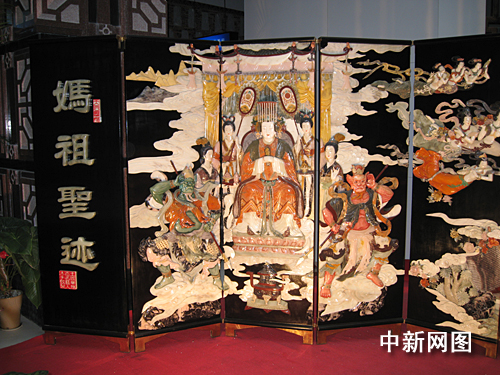 圖:閩臺(tái)緣博物館內(nèi)的巨幅玉石鑲嵌《媽祖》