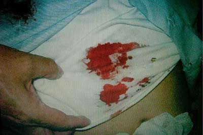 陳水扁露出剛進(jìn)入醫(yī)院治療時的斑斑血跡供院方拍照。