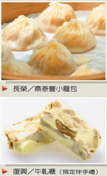 臺(tái)灣復(fù)興航空昨天首先公布餐點(diǎn),臺(tái)灣飛大陸的去程準(zhǔn)備八字面包(一種商務(wù)艙的西點(diǎn)餐包,上面有一個(gè)像“八”字一樣的記號)、香菇燒雞飯、紅燒獅子頭,回程是臺(tái)式紅燒排骨、鹵蛋、金瓜雞絲米粉及臺(tái)式肉燥米粉,也不排除拿出自家空廚最熱門的牛軋?zhí)钱?dāng)小禮物。