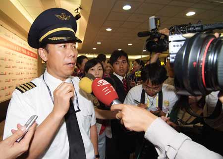 大陸觀光首發(fā)團四日抵臺,駕駛首班班機的南方航空董事長劉紹勇希望未來兩岸包機能擴大為每天常態(tài)性飛行,而且能實現(xiàn)真正直航。