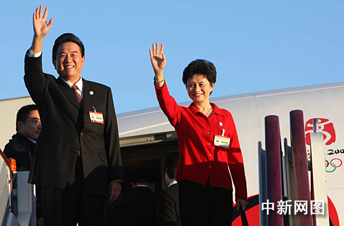 11月3日,海協(xié)會會長陳云林及夫人賴曉華一行7時30分許乘機離京赴臺。 中新社記者趙振清 攝
