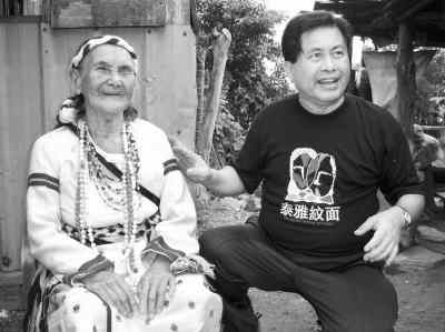 方阿妹,就是田貴實(shí)工作室里一幅紋面老人照片的主人。歲月在老人臉上刻下了滄桑,卻難掩天生麗質(zhì)。額頭所紋的圖案已經(jīng)模糊,一只眼睛也已失明,眼神卻依然安詳平和。老人在臺(tái)灣也算名人,國(guó)民黨2008參選人馬英九下鄉(xiāng)時(shí),還專程到這里看望了她。好客的老人出口成章,現(xiàn)場(chǎng)吟唱一曲:“美麗的大地,無論什么人種,大家都相融相處,遠(yuǎn)方的人來看我,祝你們身體健康!碧镔F實(shí)依偎在老人身旁做翻譯,兩人情同母子,場(chǎng)面煞是動(dòng)人。