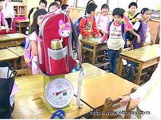 據(jù)臺灣東森新聞報道,早晨上學時間,仔細看每個小朋友,幾乎都背著要比自己還要大號的書包,還有小朋友直接用行李箱式的書包拖著上學,小學生們的書包到底有多重?實地進教室來秤一秤,“4.5公斤,哇!”小二學生驚訝地說。