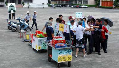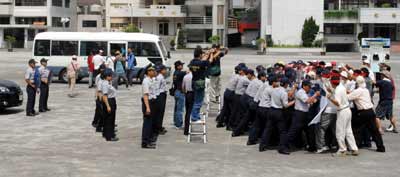 上午模擬演練的狀況,首先是風(fēng)景區(qū)“鏢客”和大陸客買賣發(fā)生糾紛,警察據(jù)報(bào)到場(chǎng)依違反社會(huì)秩序維護(hù)法將攤販帶回偵辦;另一個(gè)狀況則是大陸觀光團(tuán)在“中正紀(jì)念堂”遇上激進(jìn)團(tuán)體散發(fā)文宣,沖突一觸即發(fā),轄區(qū)警局緊急趕到現(xiàn)場(chǎng)布署,利用人墻隔開,讓大陸客安全搭上游覽車,同時(shí)驅(qū)離鬧事群眾化解危機(jī),示范內(nèi)容生動(dòng)、逼真。