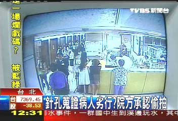 據(jù)臺(tái)灣TVBS電視臺(tái)報(bào)道,這個(gè)醫(yī)院堅(jiān)稱是消防灑水系統(tǒng)的噴口竟然是監(jiān)視錄像機(jī),臺(tái)北市議員接獲投訴,醫(yī)院裝針孔偷拍病人,火氣很大。臺(tái)北市議員莊瑞雄說(shuō),“你們到底要看什么?因?yàn)槟且婚g不是保護(hù)病房呀,除了保護(hù)病房,是不能裝這個(gè)(監(jiān)視器)的呀,醫(yī)學(xué)院應(yīng)該都有念到呀!