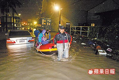 臺風(fēng)過境已造成人員傷亡,截至今天上午,在高雄縣有四人死亡、兩人失蹤。為防范臺風(fēng)險情,澎湖、云林、苗栗、南投等縣市都陸續(xù)停止民眾上班上課。