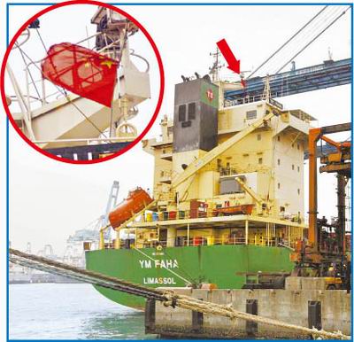 基隆港務局航政組監(jiān)理科說,“商港法”第25條明定,“船舶入港至出港時,應懸掛臺灣旗幟、船籍國國旗與船舶電臺呼號旗!被「蹌站直硎,“YM FA HA”貨輪主桅懸掛五星紅旗、船尾懸掛塞浦路斯國旗已違反“商港法”。