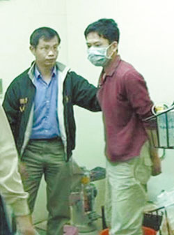 正在制毒的藥劑師謝某(圖右)被逮捕。(來(lái)源:臺(tái)灣《中國(guó)時(shí)報(bào)》)