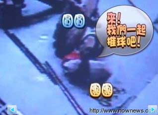 團(tuán)團(tuán)正無聊,突然看到一顆紅球,好奇心超強(qiáng)的它,立刻滾起球來,圓圓馬上加入,兩只熊貓一左一右合作無間!不想玩球了,就開始互相聞來聞去,團(tuán)團(tuán)甚至爬到圓圓背上,好像在摔跤,又像是發(fā)情,動(dòng)作愈來愈激烈。