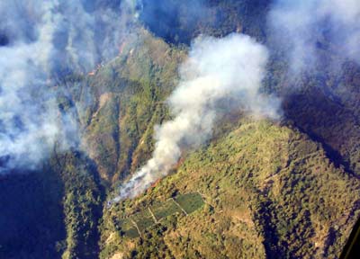 嘉義林管處處長楊宏志表示,阿里山公路69公里路段邊坡大火,從昨天凌晨1時到今天上午10時左右,已經(jīng)燒毀約14公頃的草生林地,火勢仍無法完全控制,往阿里山公路上方蔓延,已延燒到阿里山公路71公里處邊坡。