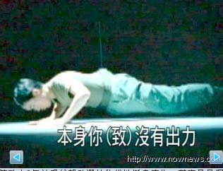 中新網(wǎng)1月21日電 據(jù)臺灣“今日新聞”報(bào)道,陳水扁之子陳致中9年前為父親助選拍的伏地挺身(俯臥撐)廣告,其實(shí)是吊鋼絲完成的,當(dāng)年幫陳致中吊鋼絲的師傅直接點(diǎn)明陳致中雙手根本沒有力,才要靠吊鋼絲來輔助。